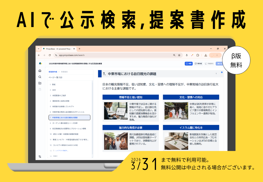 AIで提案書作成は、3日 → 30分。行政案件特化提案書作成エージェント「Propo Base」β版をリリース